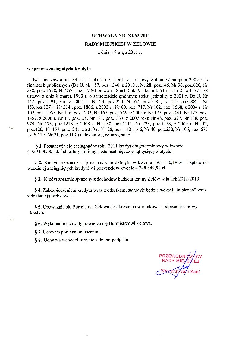 | Tytuł aktu prawnego - skrócony: | w sprawie zaciągnięcia kredytu |