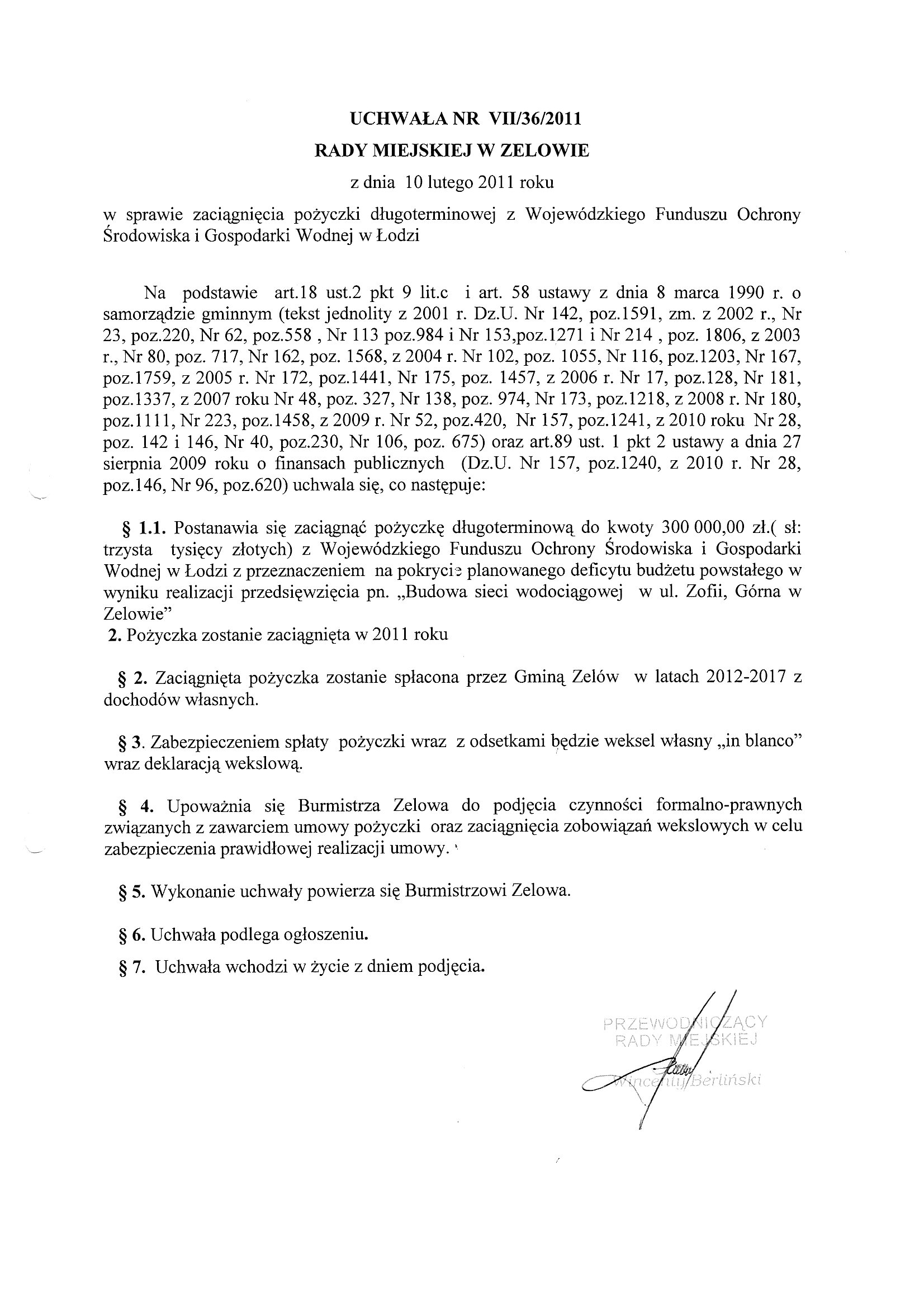 | Tytuł aktu prawnego - skrócony: | Uchwała w sprawie zaciągnięcia pożyczki długoterminowej z Wojewódzkiego Funduszu Ochrony Środowiska i Gospodarki Wodnej w Łodzi |