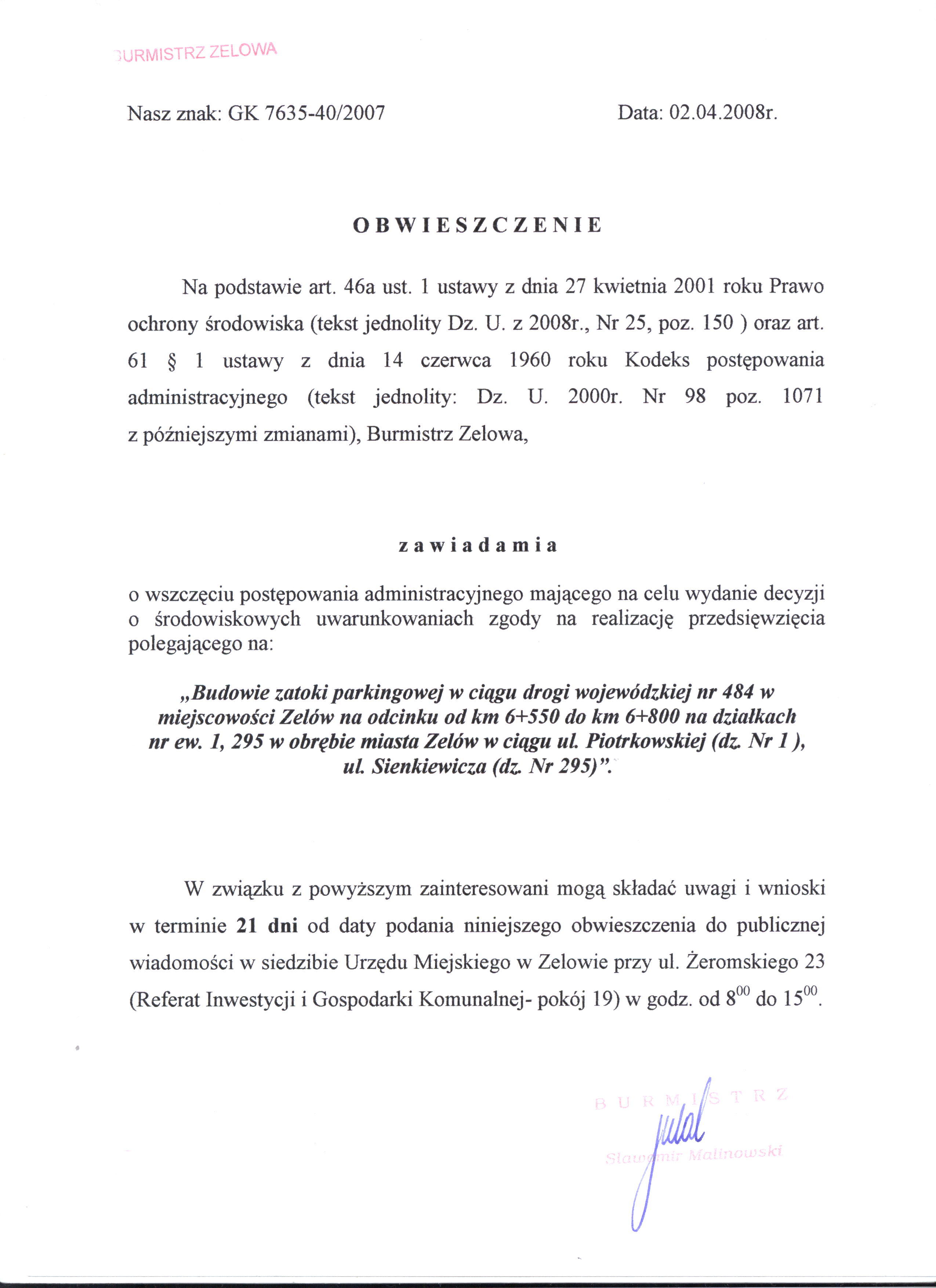 | Znak sprawy: | GK 7635-40/2007 |
