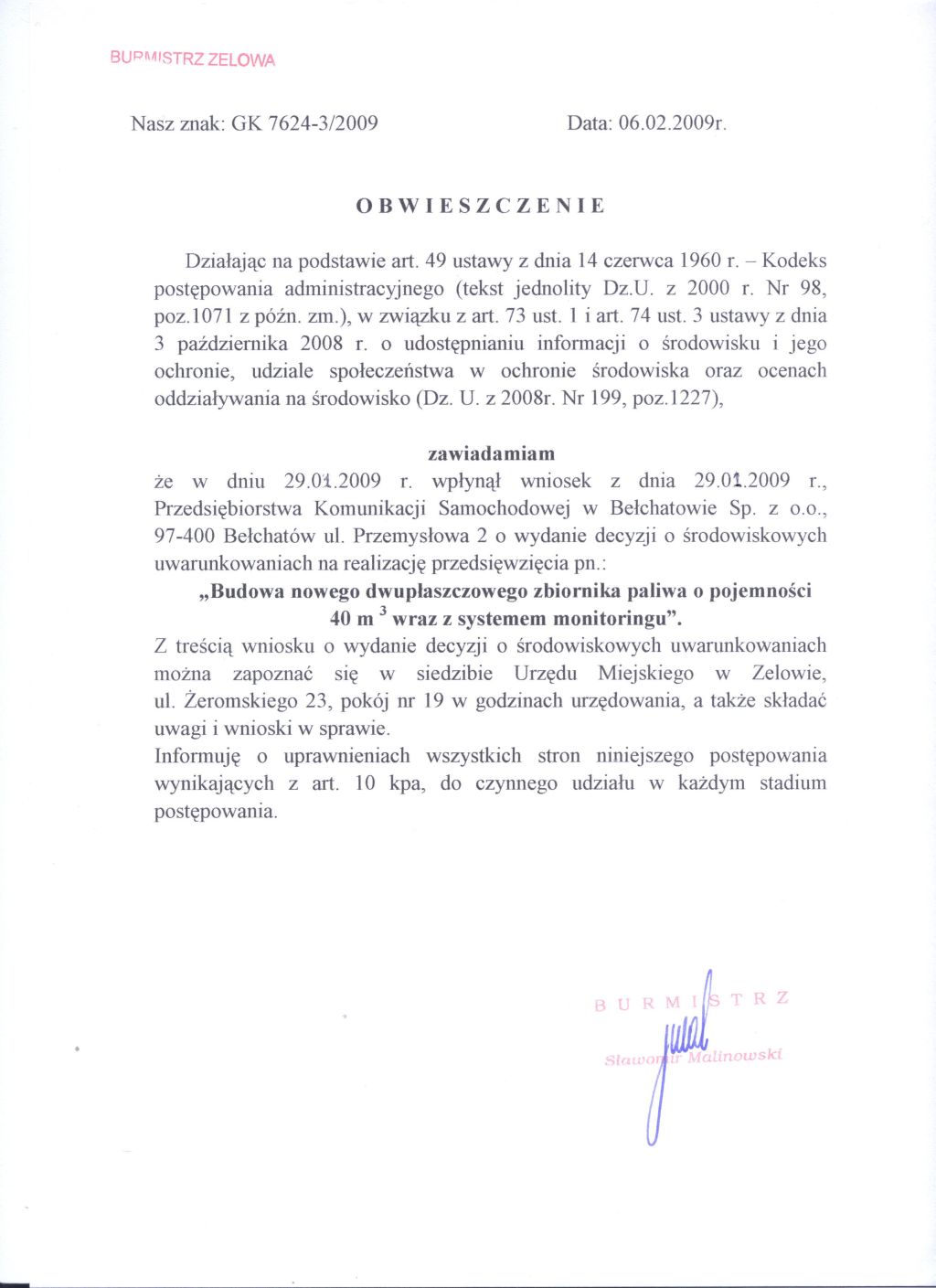 | Od kiedy ogłoszenie publikowane na tablicy: | 2009-02-06 |