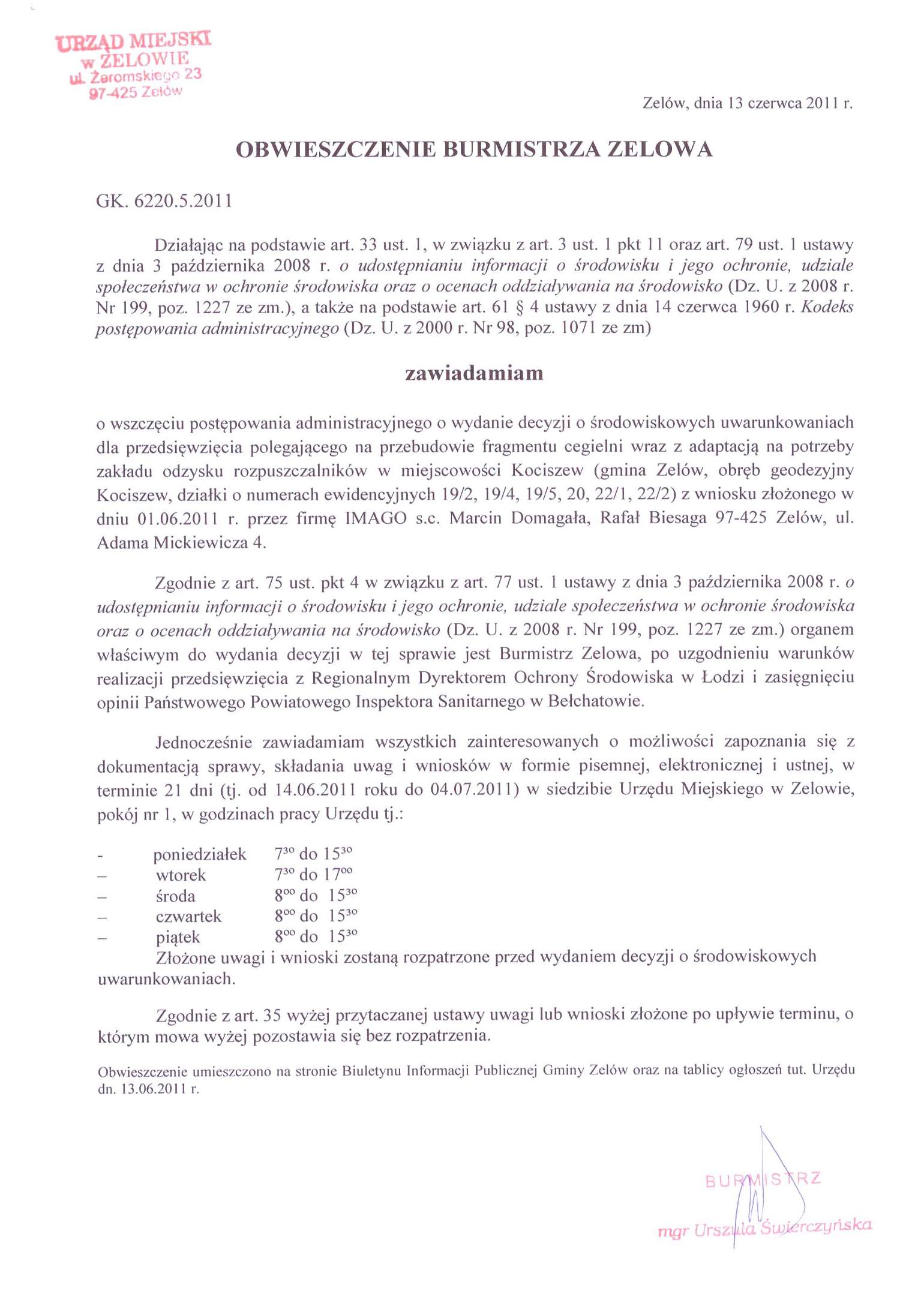 | Znak sprawy: | GK. 6220.5.2011 |