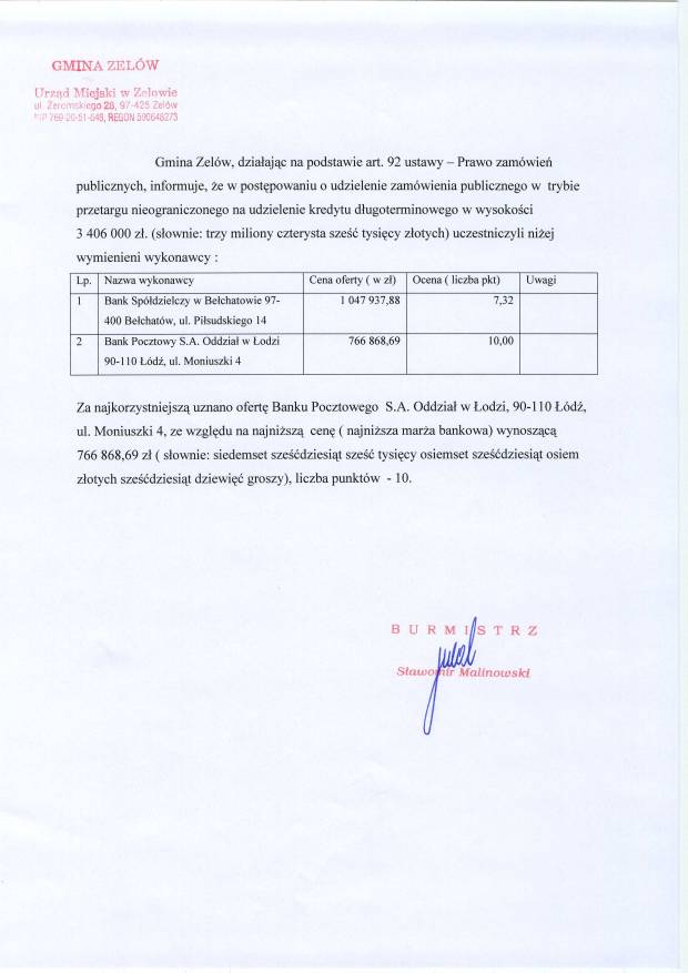 | Komórka organizacyjna przekazująca ogłoszenie: | Referat Finansowy |