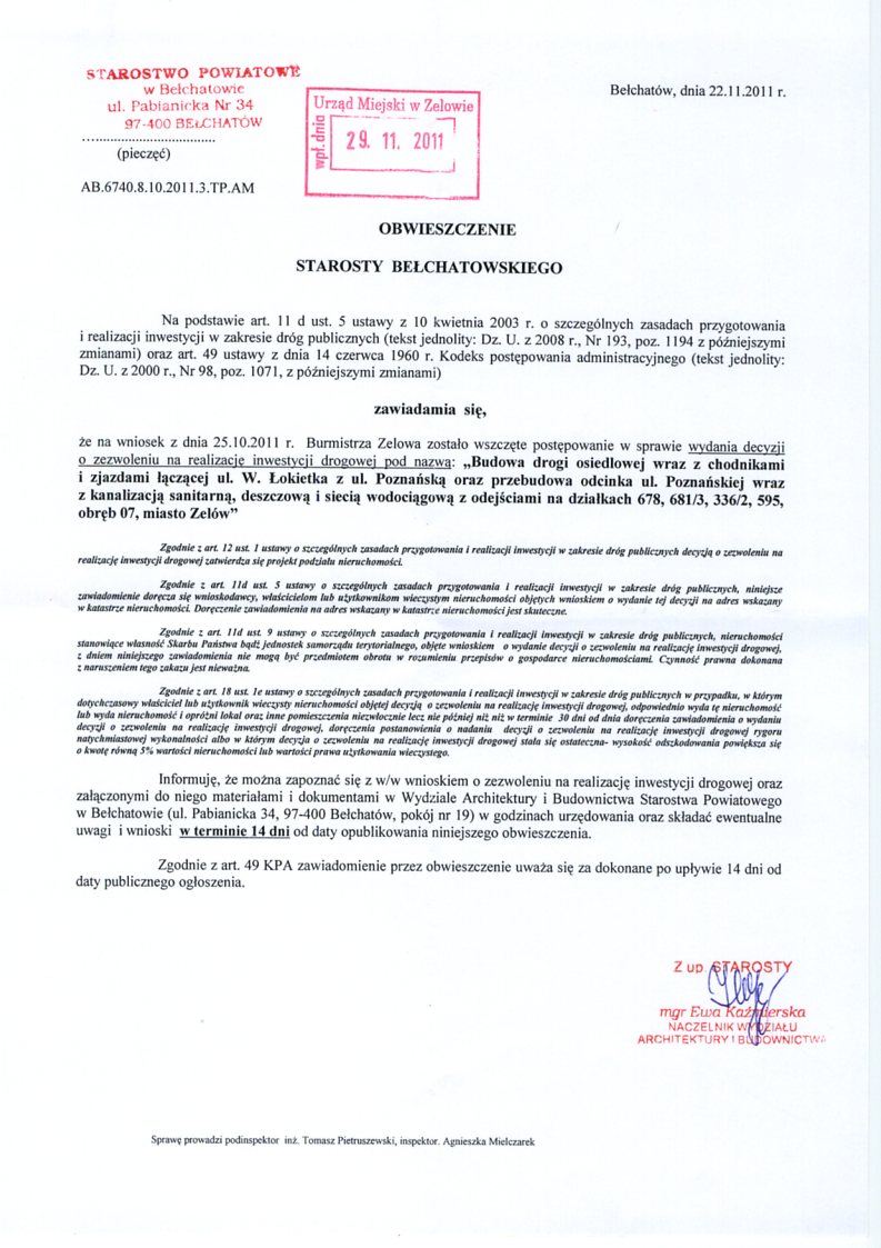 | Od kiedy ogłoszenie publikowane na tablicy: | 2011-11-30 |