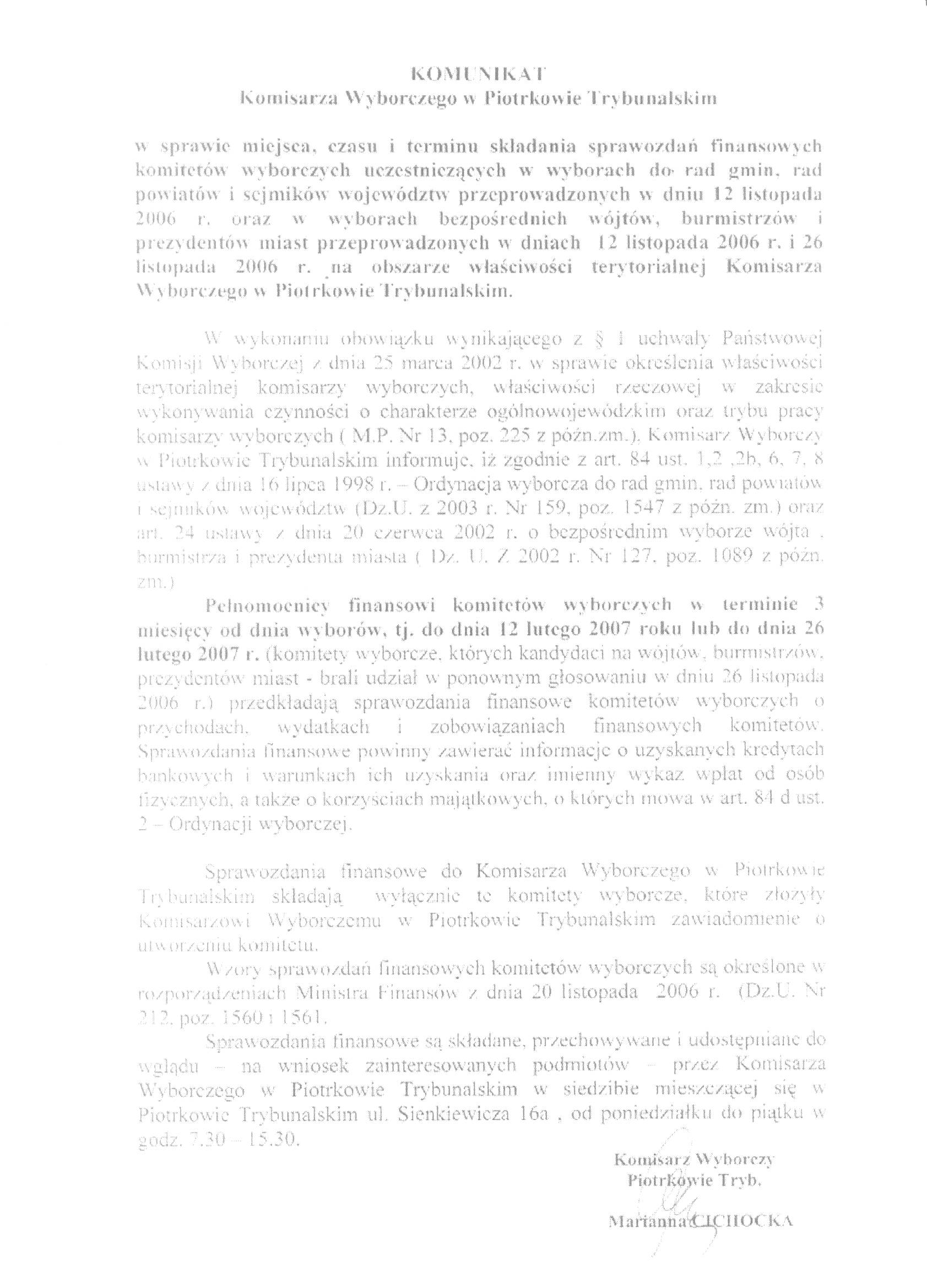 | Od kiedy ogłoszenie publikowane na tablicy: | 2006-11-29 |