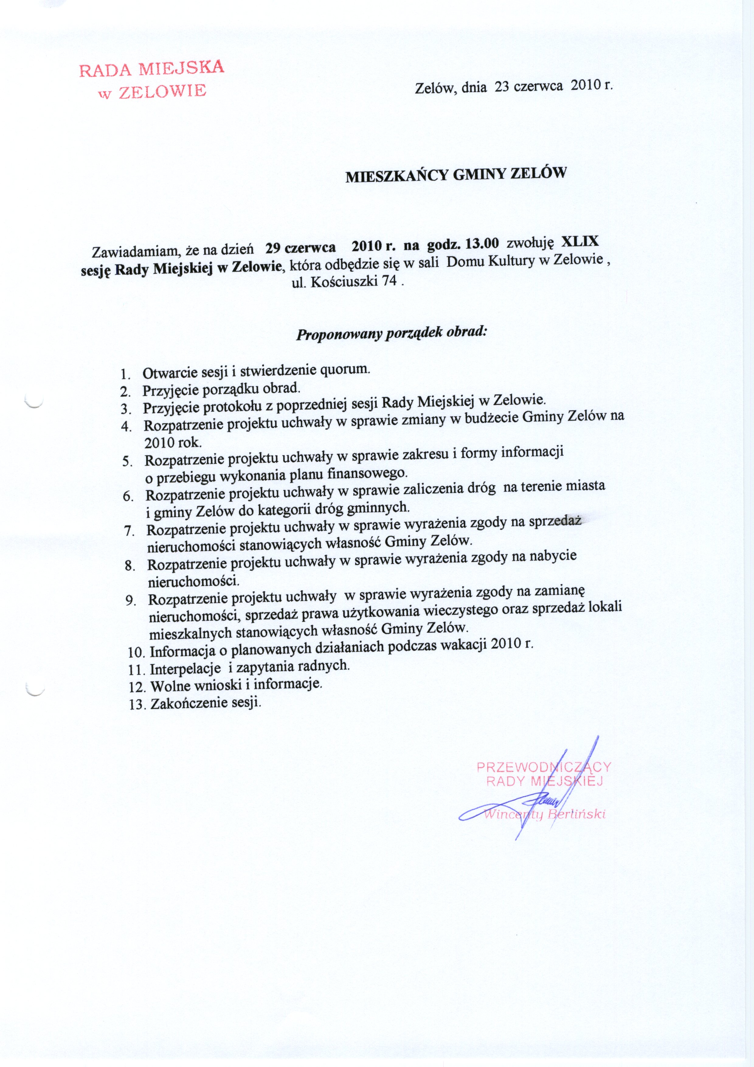 | Komórka organizacyjna przekazująca ogłoszenie: | Biuro Rady Miejskiej |