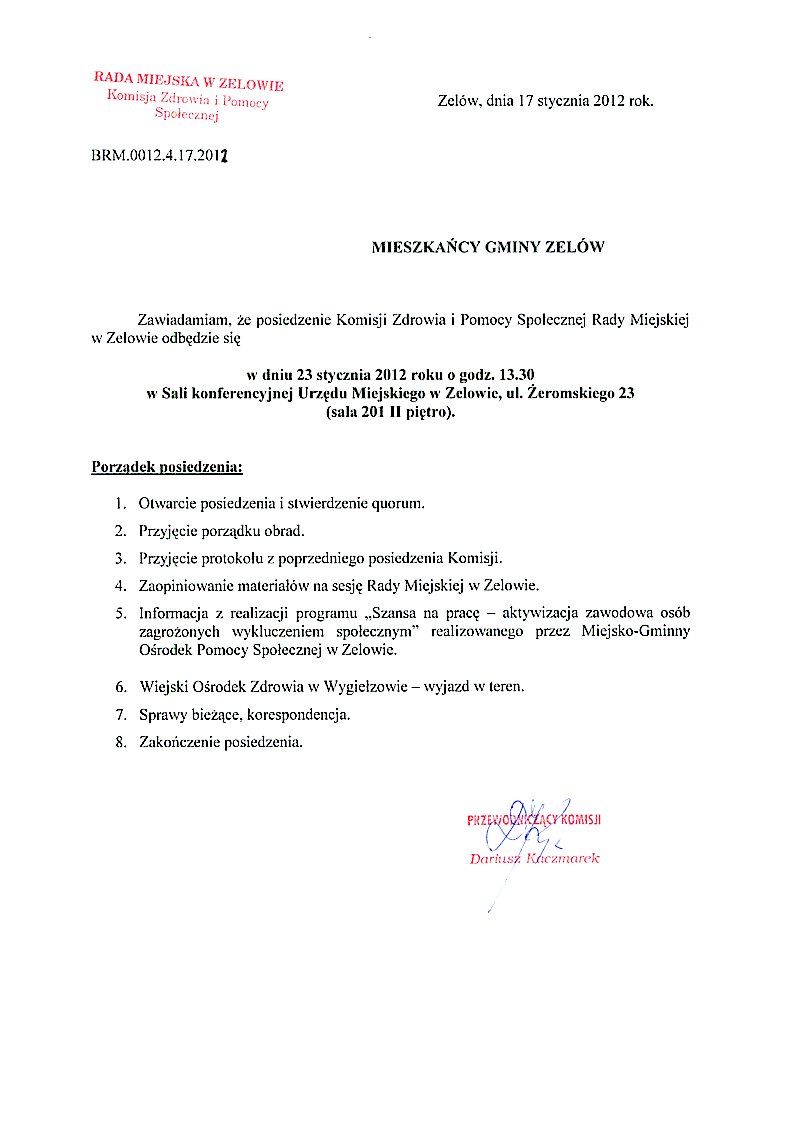 | Komórka organizacyjna przekazująca ogłoszenie: | Biuro Rady Miejskiej |