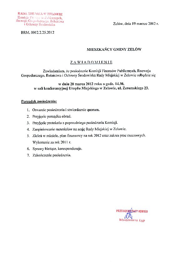 | Komórka organizacyjna przekazująca ogłoszenie: | Biuro Rady Miejskiej |