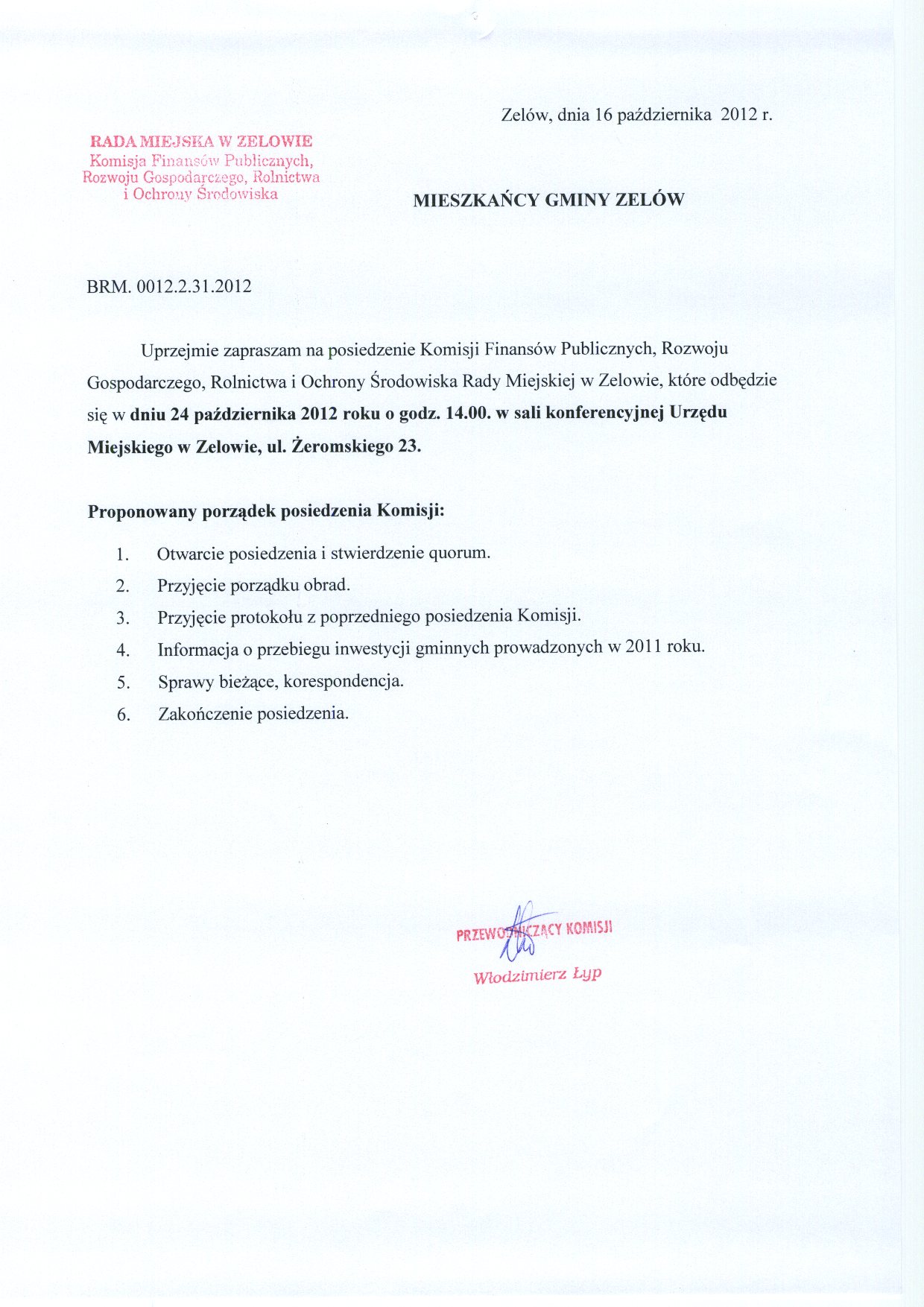 | Znak sprawy: | BRM.0012.2.31.2012 |