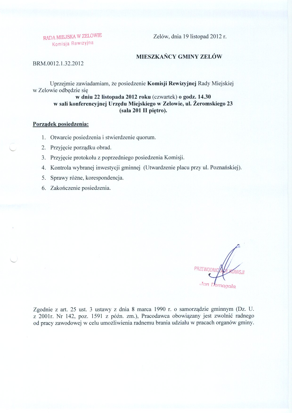 | Adresat: | Zawiadomienie na posiedzenie Komisji Rewizyjnej |