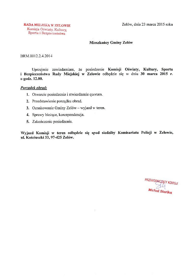 | Komórka organizacyjna przekazująca ogłoszenie: | Biuro Rady Miejskiej |