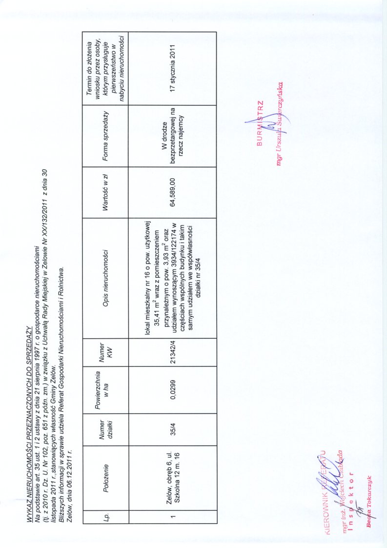 | Komórka organizacyjna prowadząca tablicę: | Referat Gospodarki Nieruchomościami i Rolnictwa |