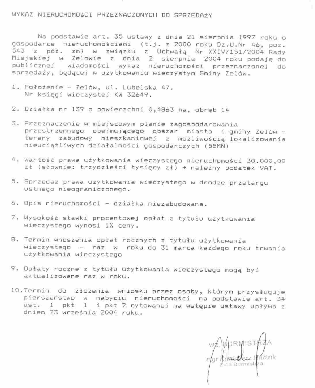 | Komórka organizacyjna prowadząca tablicę: | Referat Gospodarki Nieruchomościami i Rolnictwa |