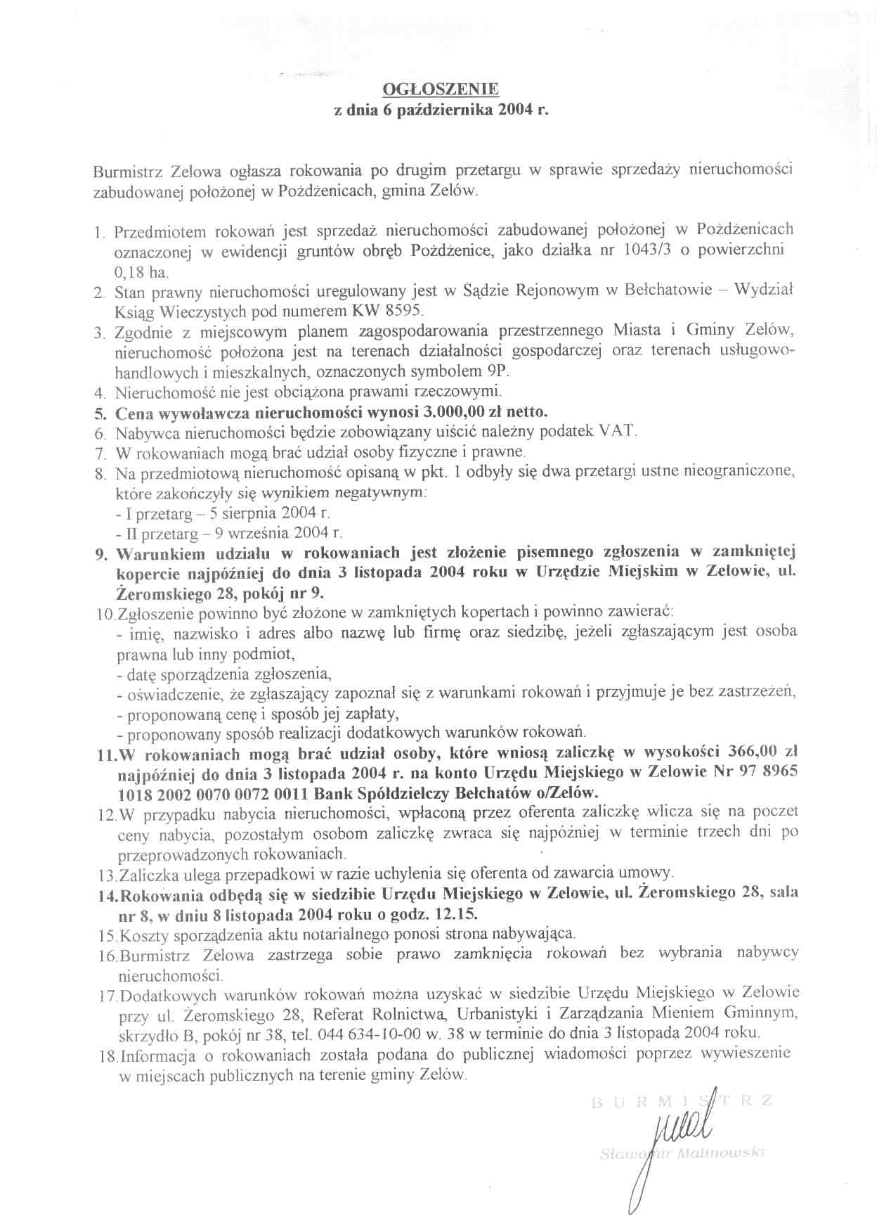 | Od kiedy ogłoszenie publikowane na tablicy: | 2004-10-07 |