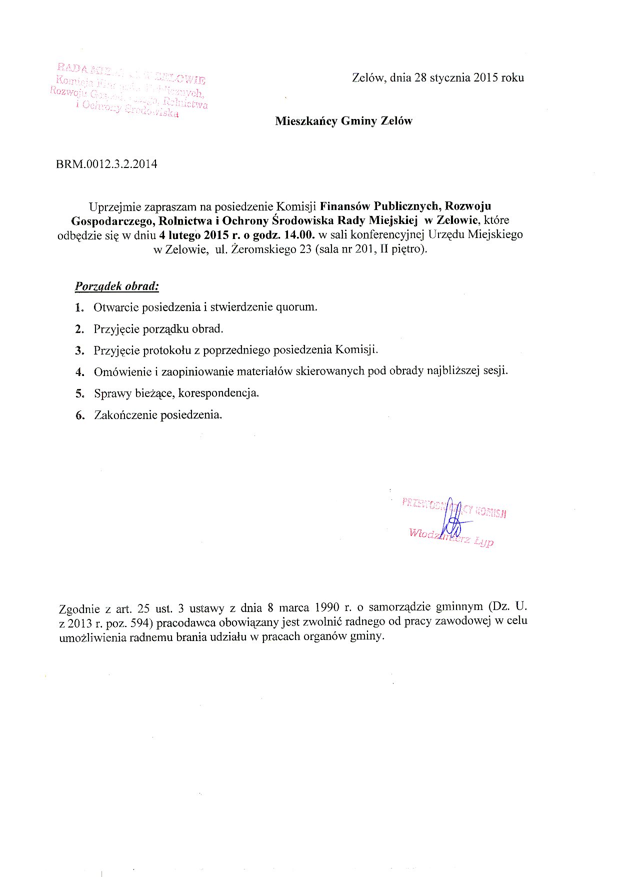 | Nazwa tablicy: | Posiedzenia Komisji Rady w miesiącu luty 2015 roku |