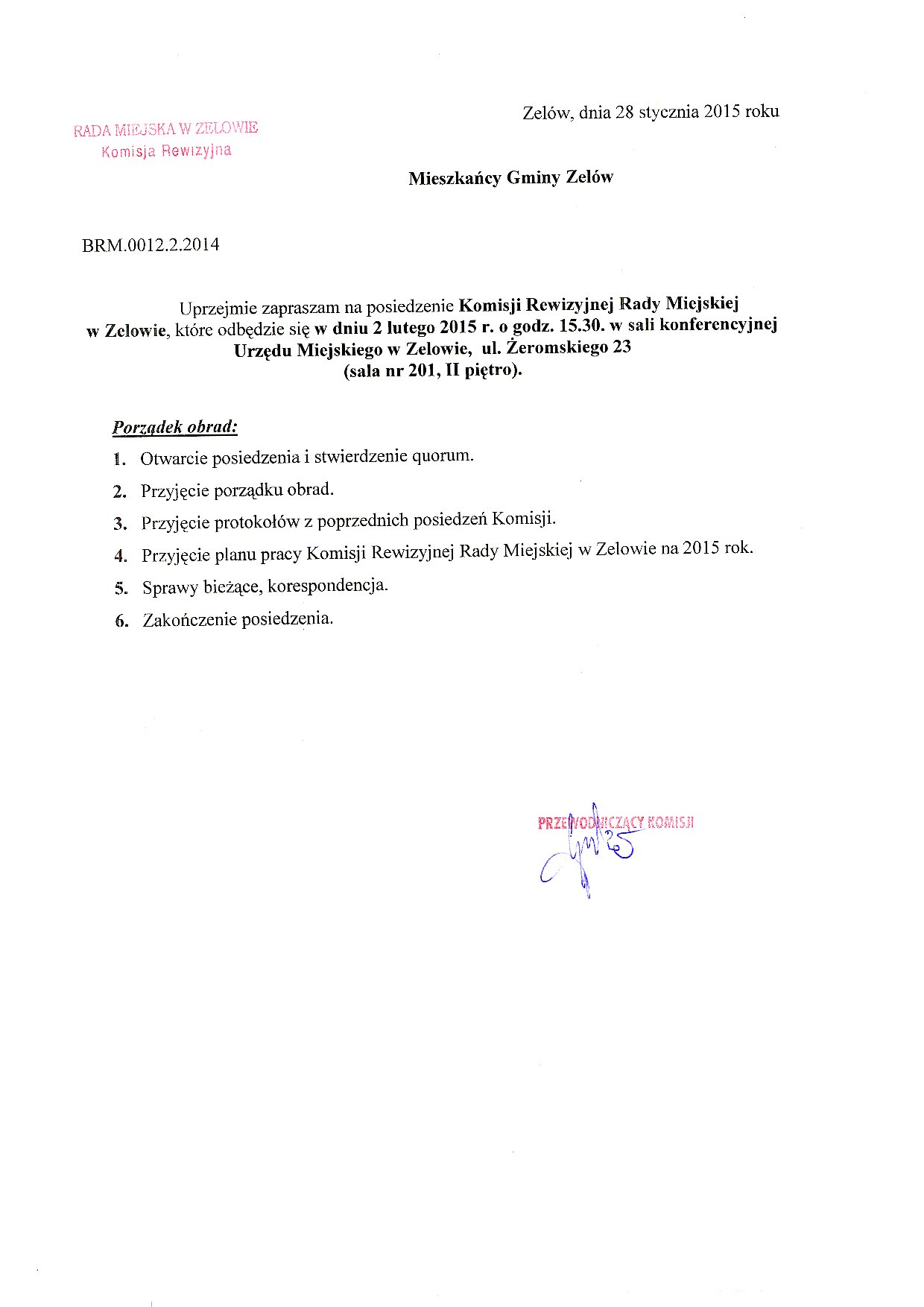 Zawiadomienie o posiedzeniu Komisji Rewizyjnej