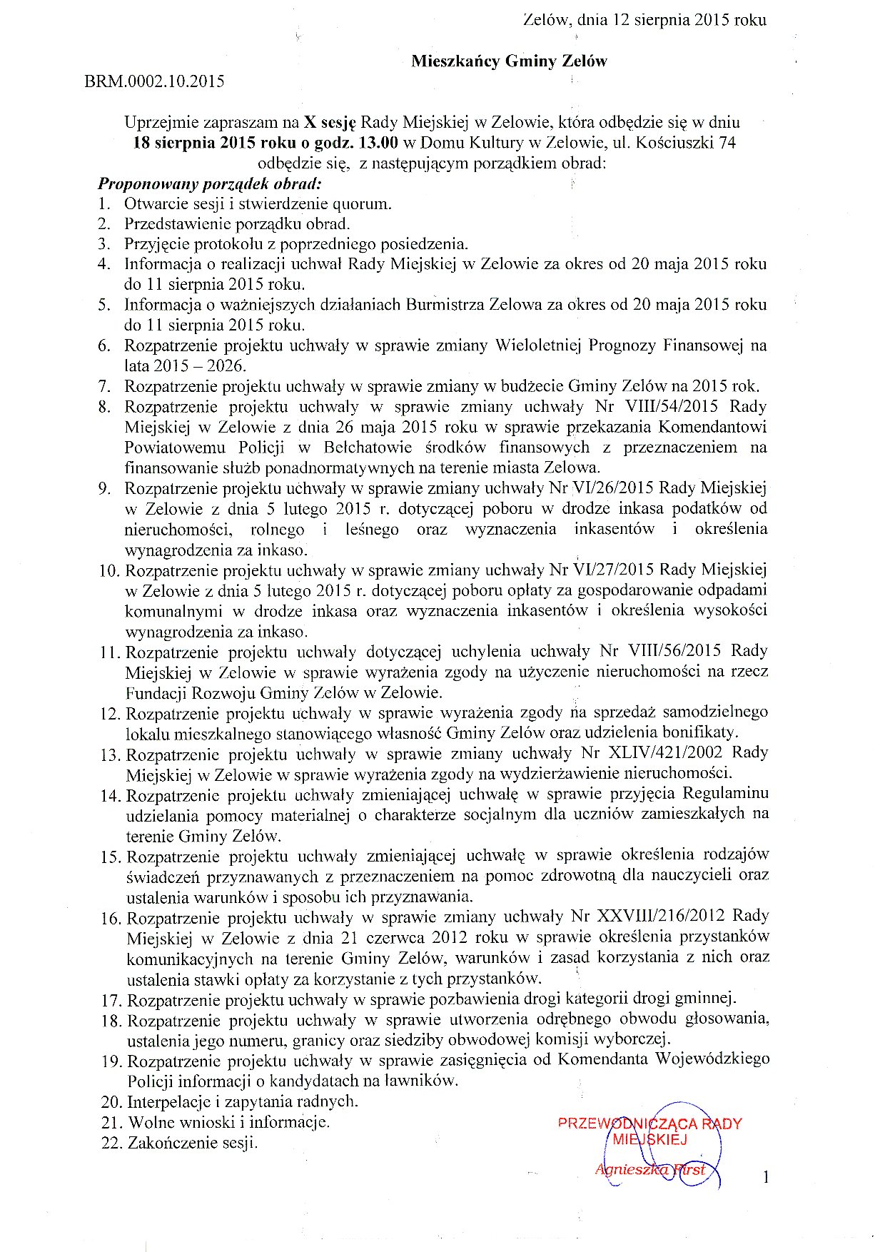 | Komórka organizacyjna przekazująca ogłoszenie: | Biuro Rady Miejskiej |
